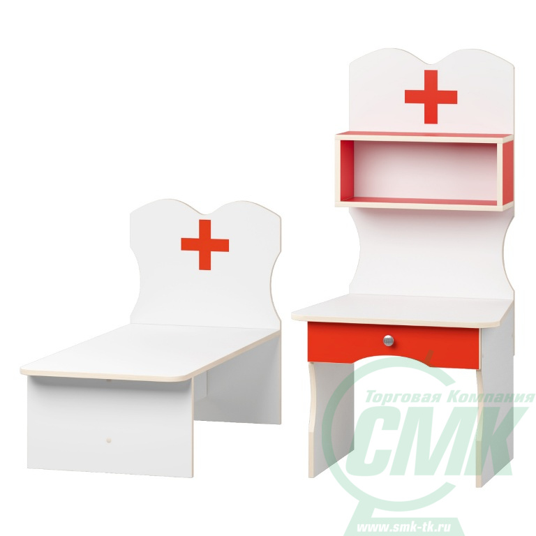 Возможные цвета: Белый / Голубой / Красный Комплект игровой мебели "Доктор-2" предназначен для развивающего уголка.Оригинальная стойка для лекарств и кушетка делают его похожим на кабинет врача. На кушетку можно положить «больную» куклу, измерить температуру, послушать и т.п. Комплект игровой мебели "Доктора-2" прекрасно подойдет для сюжетно-ролевых игр, которые помогут развить у ребёнка трудовые навыки, навыки самообслуживания, заботливого отношения, аккуратность. Игры в уголке закрепляют и систематизируют знания детей о труде взрослых, профессиях врача, медицинской сестры.