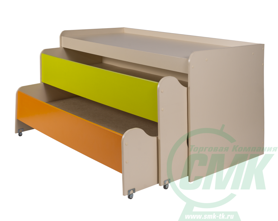 Кровать детская раздвижная 2 яруса с тумбой МАТРЁШКА-2 Цветная