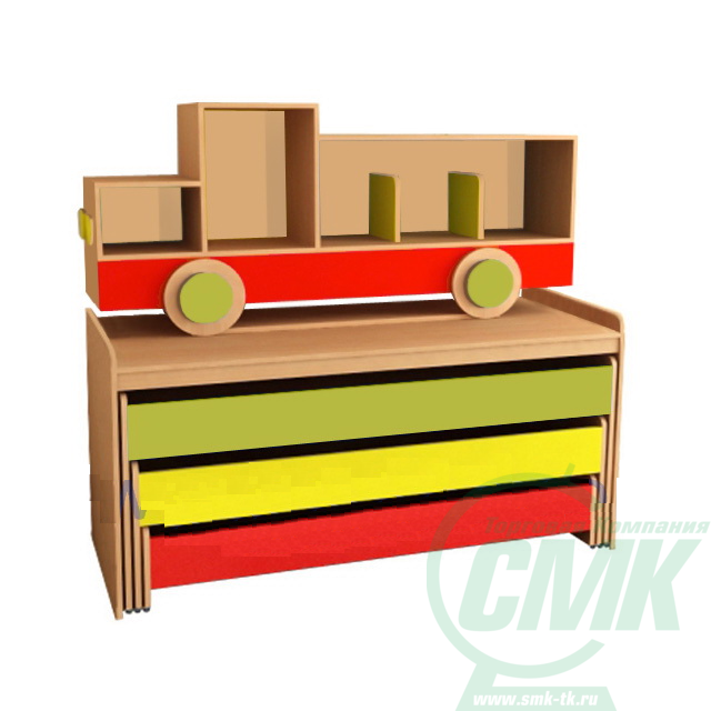 Кровать-тумба детская выкатная 3-ярусная М-92 "Машина"