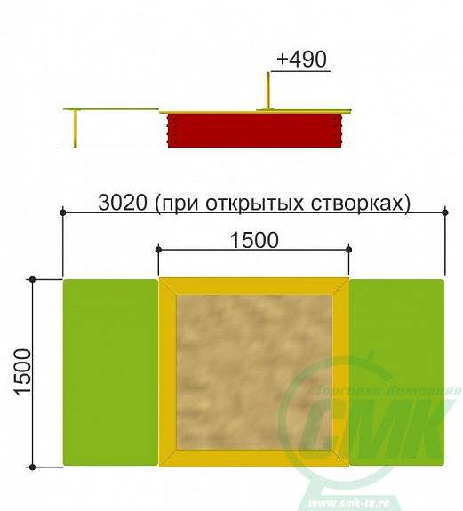 1500x1500x490 (3020x1500x490)мм.