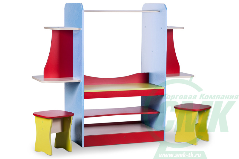 Набор состоит из трех предметов Использование для игры со всех сторон — возможность установки в центре помещения Нижние полки открытые и находятся в зоне доступа ребенка Рассчитан на игру группой — развитие навыков общения у ребенка