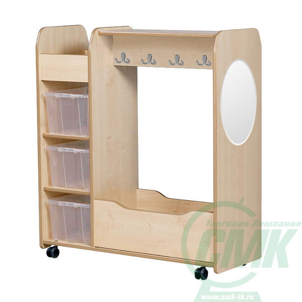 ЛДСП 16мм., кромка и кант ПВХ. Установлены усиленные поворотные прорезиненные колеса. 2 из них со стопором (тормозом). Контейнер ПВХ:390х280х280мм - 3шт.