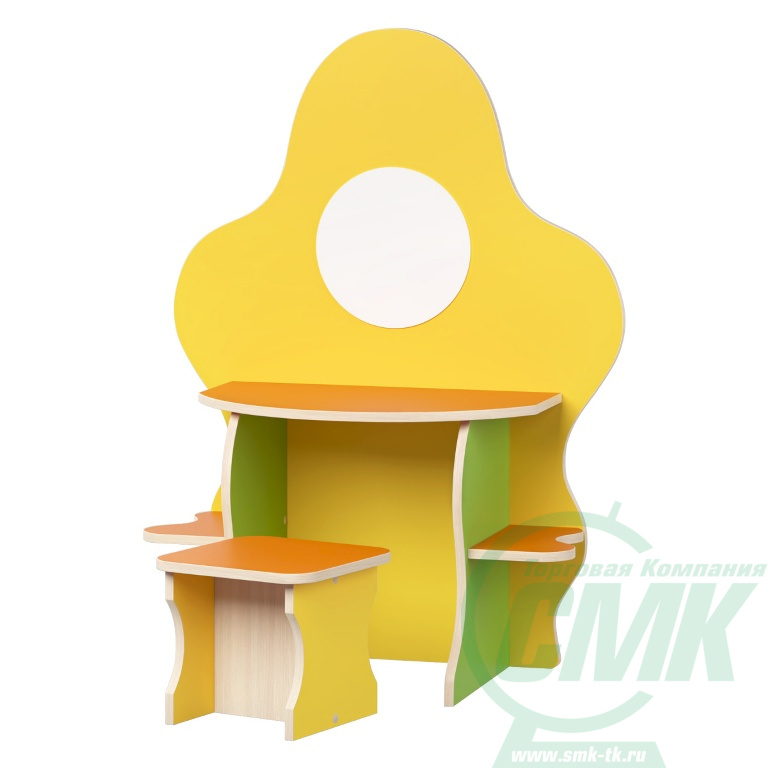Возможные цвета: Ваниль / Голубой / Желтый / Зеленый / Красный / Оранжевый / Розовый / Синий / Белый Красочный уголок для сюжетно-ролевых игр, поможет детям развить творческие навыки, разнообразить фантазию, воспитать стремление к опрятности и чистоте, закрепить знания о профессии парикмахера. Уголок имеет зеркало закругленные полочки для расчесок, щеток, бутылочек. В комплект входит пуфик для посетителей.
