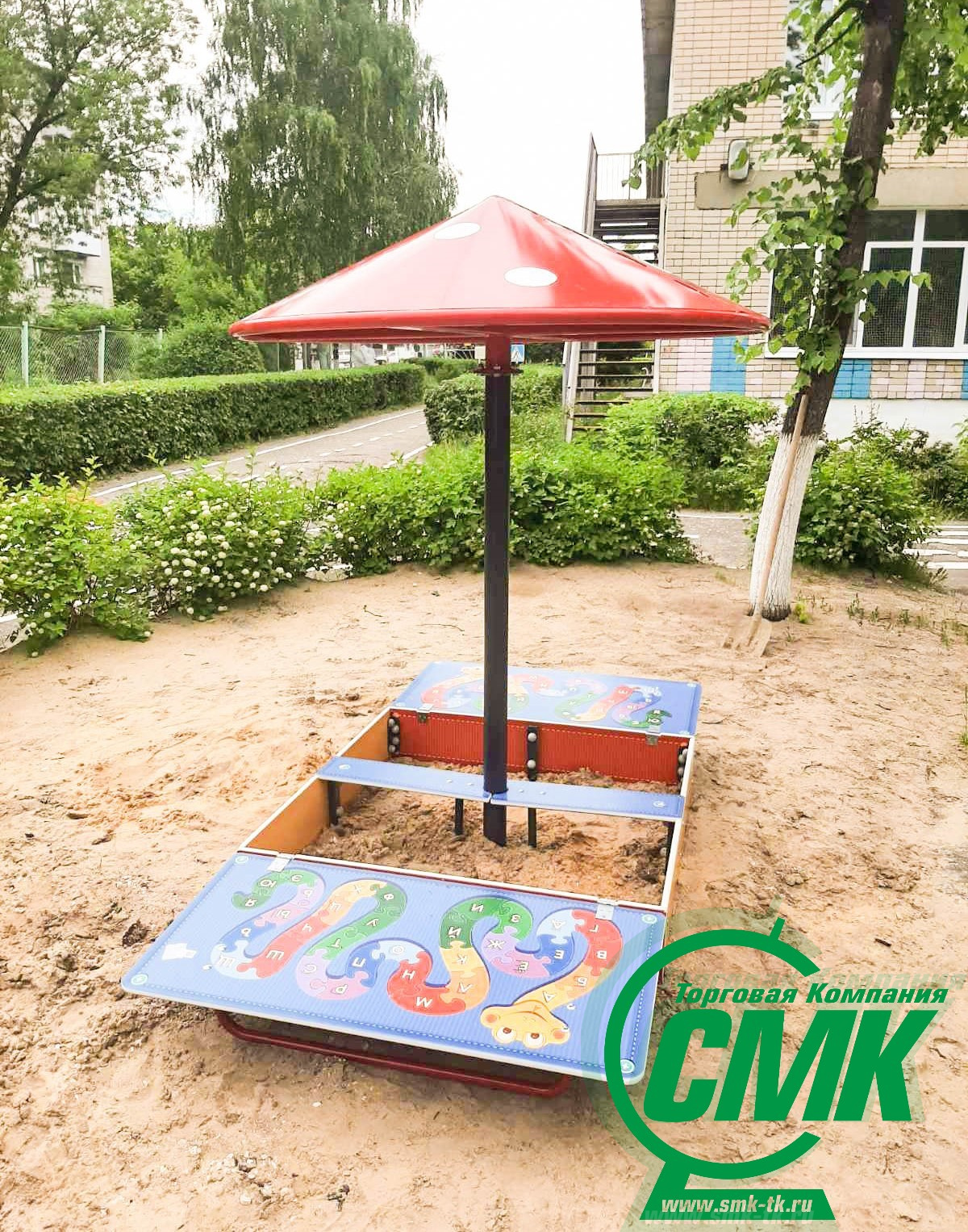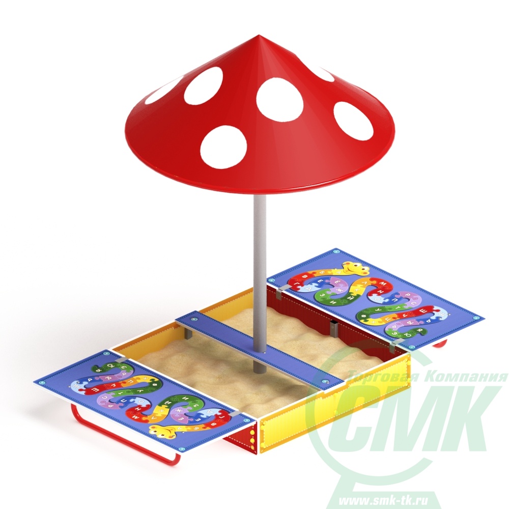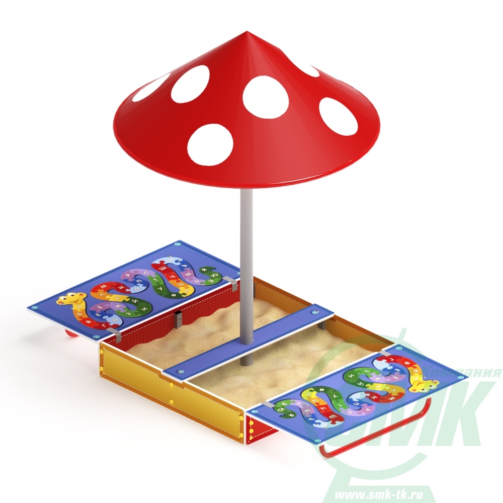 Песочница Азбука с крышкой и грибком ИО 5.01.10-01