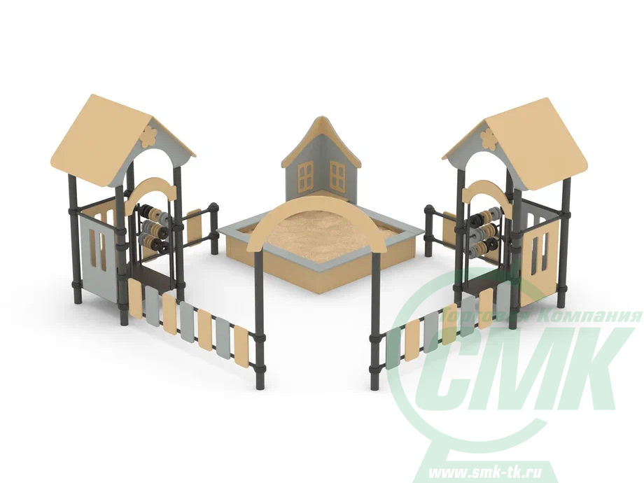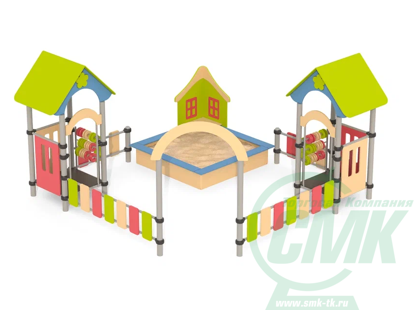 Песочный дворик – это яркий игровой комплекс с песочницей и домиками. На домиках установлены счеты, которые помогают развивать мелкую моторику и учиться счету. Игры с песком также развивают мелкую моторику, фантазию и усидчивость. Может устанавливаться на любых площадках. Является не только практичным игровым оборудованием, но и эстетически красивым украшением площадок.