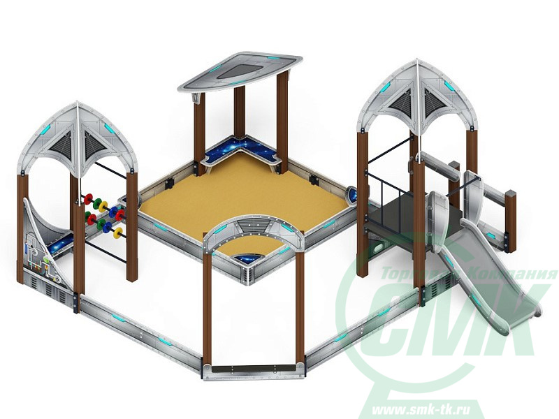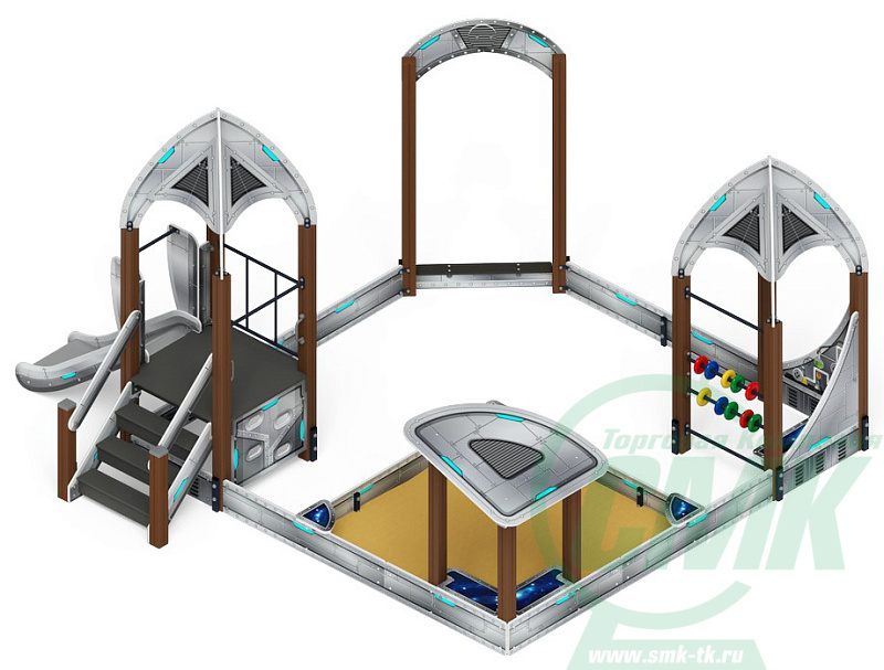 Песочный дворик с горкой Космопорт (Серый) - ИО 6.14.01-01