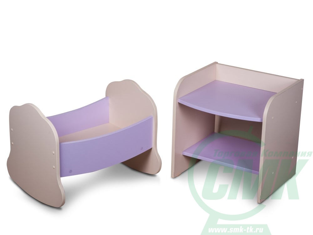 В комплект входят: кровать-люлька и пеленальный столик Кровать-люлька качается, предназначена для игры с куклами и мягкими игрушками Во время игры у детей воспитываются навыки заботливого отношения и аккуратность Мобильность отдельных составных частей комплекта — возможность оптимального использования пространства