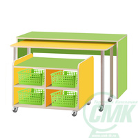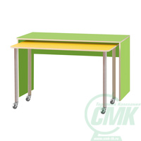 Набор 2 стола. ЛДСП,кромка и кант ПВХ Ростовая группа 1 ; 2 (460-520мм) Ножки из трубы 32мм нерегулируемые Покрытие:полимер СЕРЫЙ или ЦВЕТНОЙ Установлены пластиковые или усиленные поворотные прорезиненные колеса. Стол-тумба 1200х550х520мм-1шт. Стол-выкатной 1100х500х460мм-1шт. Вес: 29кг