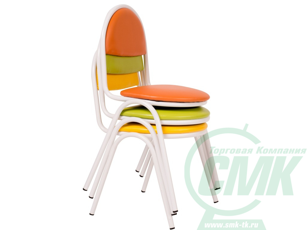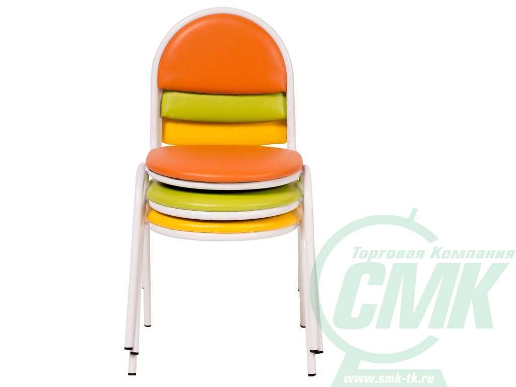 Стульчик детский стопируемый «Стёпа» для детских садов и дошкольных учреждений. Отличительная особенность - при хранении данных стульев используется крайне мало места, что очень удобно для небольших помещений. В стопку могут складываться стулья разных возрастных групп. Выпускаем стулья 0, 1, 2, 3 группы роста. Стул детский изготовлен из трубы круглого сечения диаметром 18 мм, покрытие металлокаркаса — порошковая краска. Стандартные цвета металлического каркаса- серый, белый, красный. Спинка стула – полукруглая основа. Сиденье и спинка стульчика состоят из следующих элементов: каркас фанера толщиной 12 мм, обтянутая поролоном и экокожей (кожзамом с улучшенными характеристиками). Цвет металлического каркаса и обивки можно выбрать. Все материалы допускают многократную влажную уборку моющими и чистящими средствами. Нижние части опор оборудованы пластмассовыми наконечниками (заглушка пластиковая для трубы) для защиты стула при перестановке и для препятствия попаданию влаги. Технические характеристики изделия в точности соответствуют ГОСТ 19301.2-94 на детские стулья.