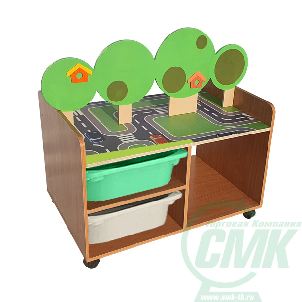 Контейнер ПВХ:300х420х100мм - 4шт. Установлены пластиковые или усиленные поворотные прорезиненные колеса. Варианты цветов ЛДСП уточняйте в отделе продаж. 2 из них со стопором (тормозом). Рисунок УФ-печать.