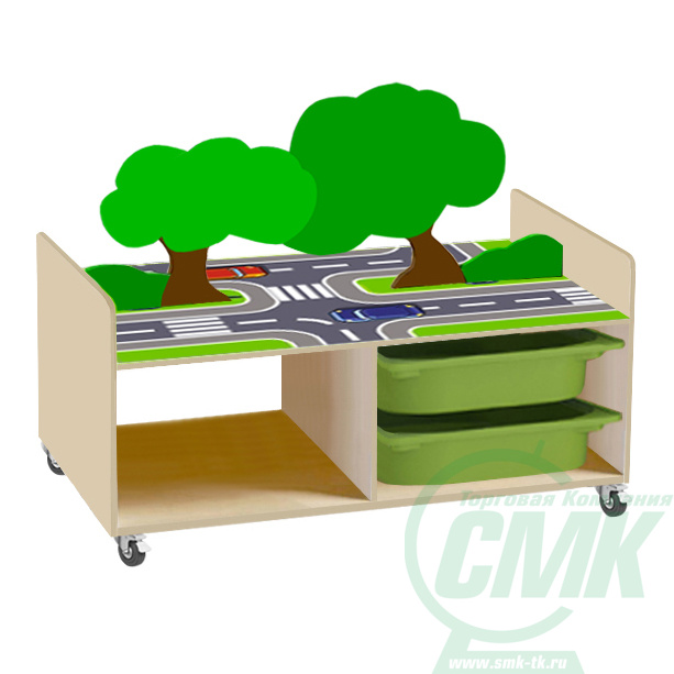 Контейнер ПВХ:300х420х100мм - 4шт. Установлены пластиковые или усиленные поворотные прорезиненные колеса. Варианты цветов ЛДСП уточняйте в отделе продаж. 2 из них со стопором (тормозом). Рисунок УФ-печать.