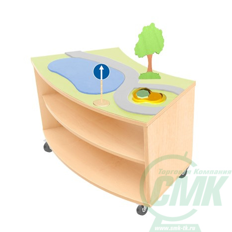 ЛДСП 16мм., кромка ПВХ. Игровые элементы из МДФ. Установлены пластиковые или усиленные поворотные прорезиненные колеса. 2 из них со стопором (тормозом).