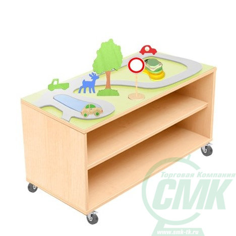 ЛДСП 16мм., кромка ПВХ. Игровые элементы из МДФ. Установлены пластиковые или усиленные поворотные прорезиненные колеса. 2 из них со стопором (тормозом).
