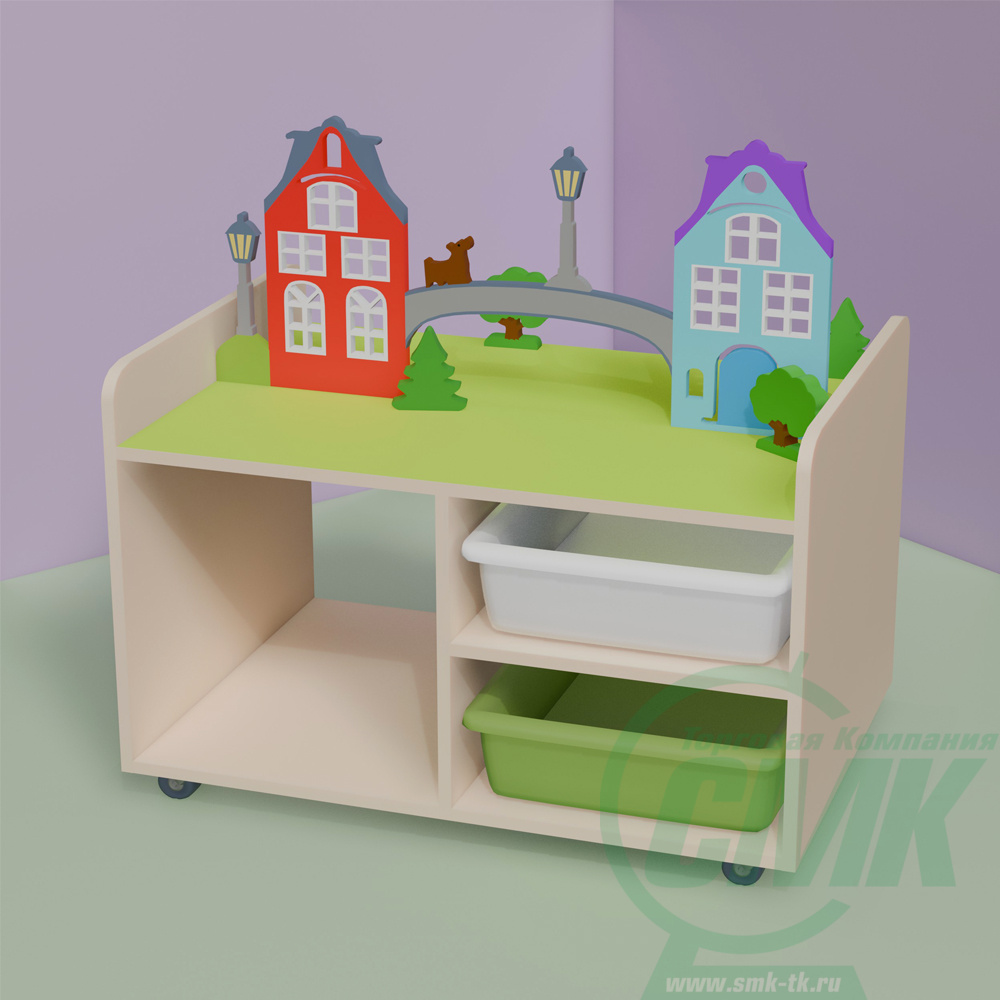 Варианты цветов уточняйте в отделе продаж. Установлены пластиковые или усиленные поворотные прорезиненные колеса. 2 из них со стопором (тормозом). Ландшафтные фигурки - 4 штуки. Контейнер ПВХ:300х420х100мм - 4шт.