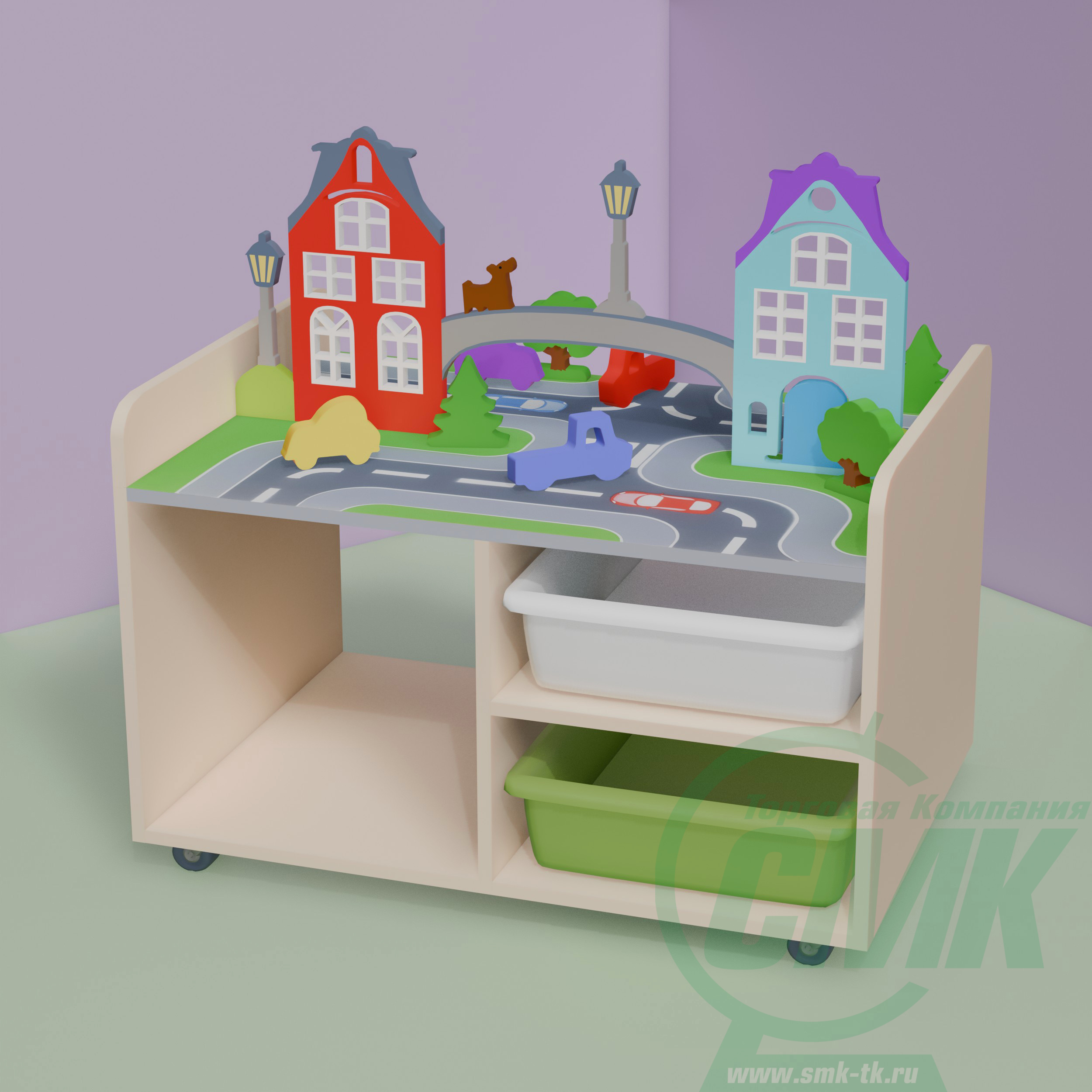 Варианты цветов уточняйте в отделе продаж. Установлены пластиковые или усиленные поворотные прорезиненные колеса. 2 из них со стопором (тормозом). Ландшафтные фигурки - 4 штуки. Контейнер ПВХ:300х420х100мм - 4шт.
