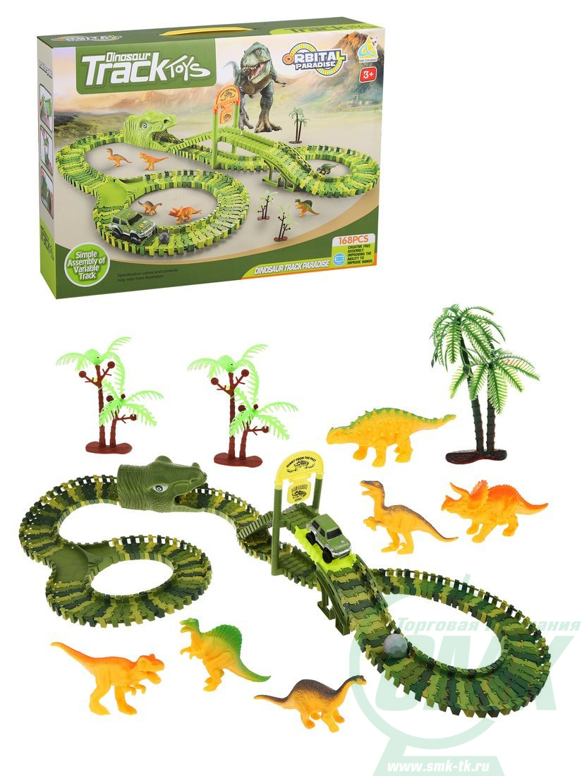 сборки трека с туннелем-пещерой в виде головы динозавра, 6 фигурок динозавров, 3