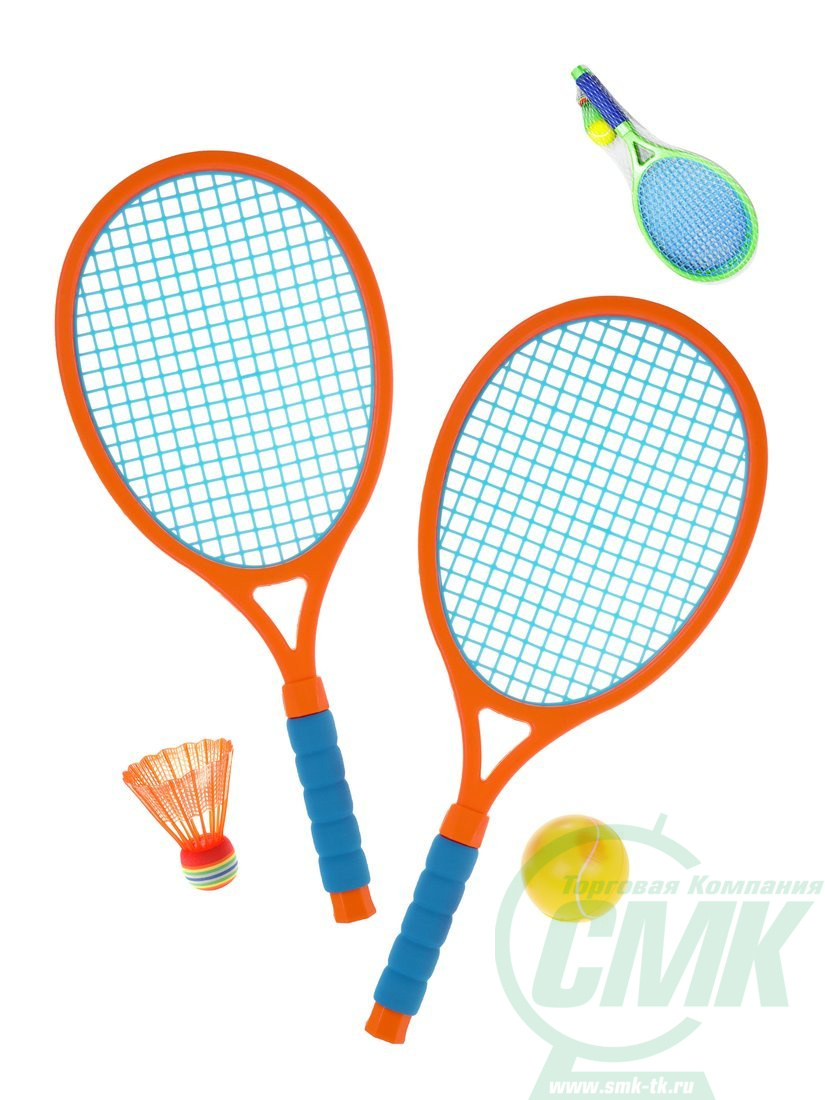 Игровой набор "Спорт"; ракетка 49,5х21 см. 2 шт., шарик, волан со светом, в ассорт., упак. сетка код 636314 арт.636314