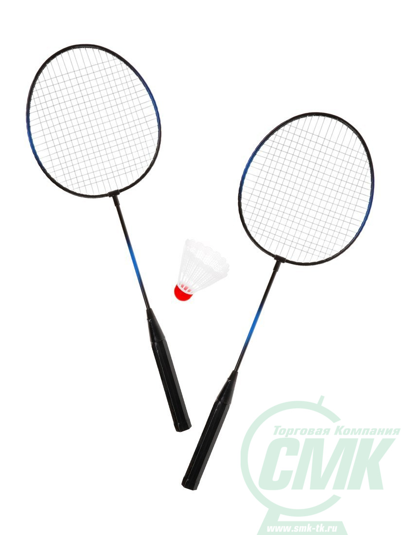 Ракетки для бадминтона 2 шт. синие, волан 1 шт., сетка код.649689 арт.1802H5