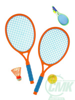 Ракетки для игр на открытом воздухе 33 см. 2 шт., волан, мяч, сетка арт.8821A1 код.653716