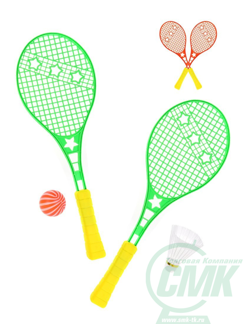 Ракетки для игр на открытом воздухе "Звёзды" 43 см. 2 шт., волан, мяч, в ассорт.. Сетка код.654565 арт.888Y