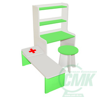 Возможные цвета: Желтый / Красный / Голубой Комплект игровой мебели "Поликлиника" предназначен для кукольного уголка. Стол и стул предназначены для детей. Оригинальная стойка для лекарств и ростомер дополняют уголок и делают его похожим на кабинет врача. На кушетку можно положить «больную» куклу, измерить температуру, послушать и т.п. Комплект игровой мебели "Поликлиника" прекрасно подойдет для сюжетно-ролевых игр, которые помогут развить у ребёнка трудовые навыки, навыки самообслуживания, заботливого отношения, аккуратность. Игры в уголке закрепляют и систематизируют знания детей о труде взрослых, профессиях врача, медицинской сестры.