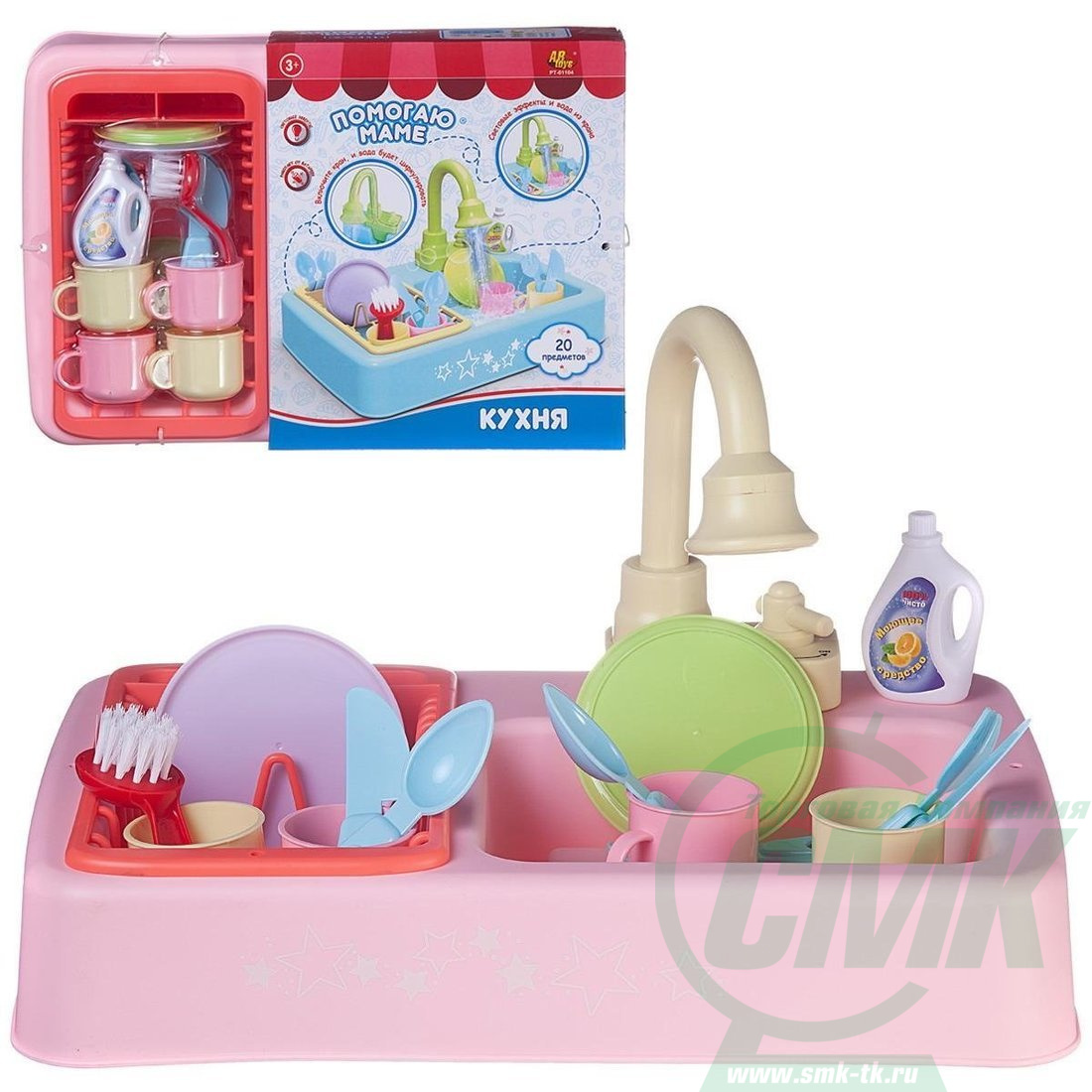 Игровой набор Кухонная раковина с аксессуарами, свет и звук код 601389 арт. PT-01104/розовая