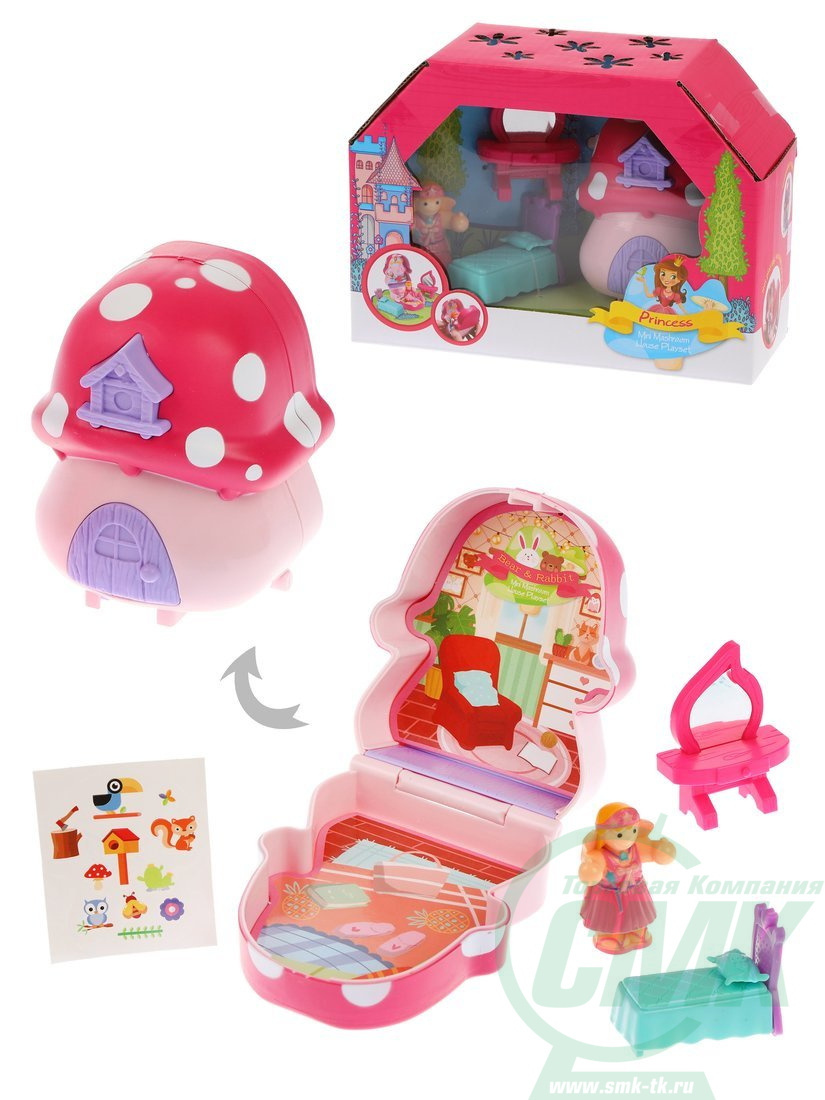 дом-грибок можно обустроить мебелью, предлагающейся в комплекте: кроваткой и