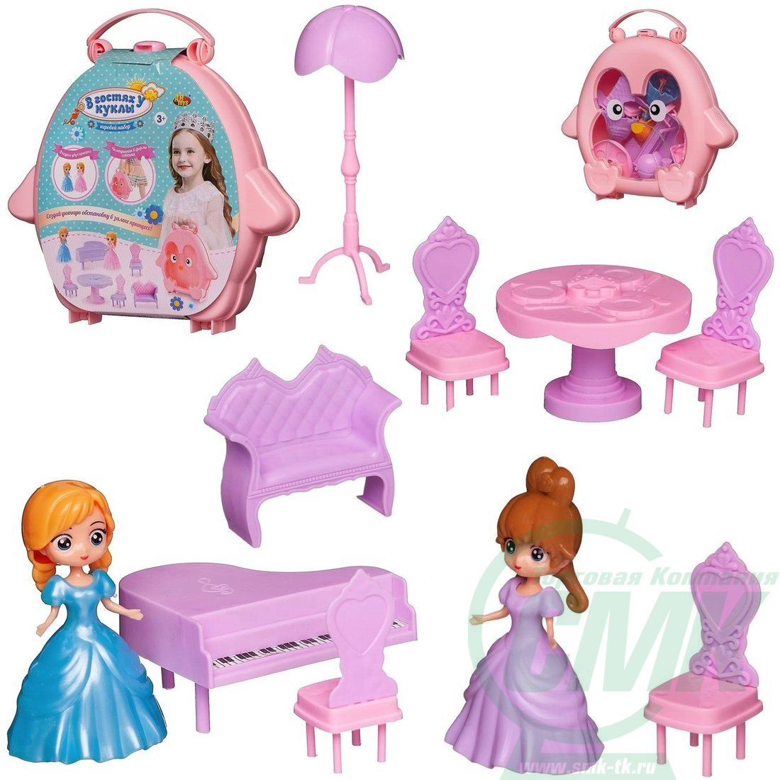 Игровой набор В гостях у куклы Розовый совенок чемоданчик с 2 куколками и мебелью код 601588 арт. PT-01803