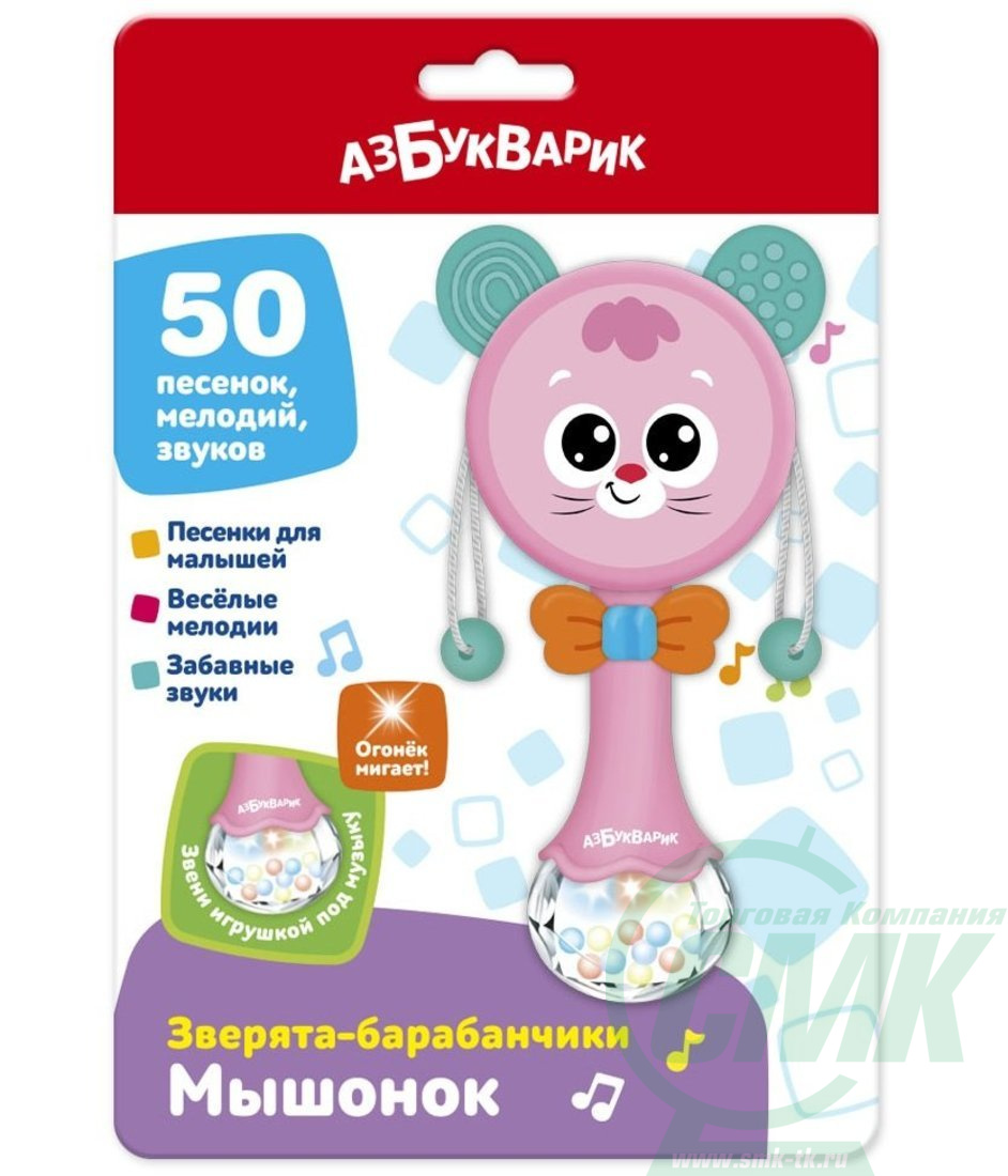 Традиционная игрушка для самых маленьких – теперь с музыкальной кнопочкой! Милый мышонок из серии «Зверята-барабанчики» подарит ребенку отличное настроение!