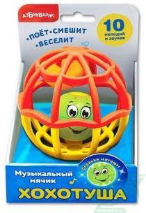 С такой игрушкой малыш не будет плакать и грустить, ведь мячик так весело смеётся! Забавные звуки и мелодии ("Чунга-чанга", "Кукарача" и другие) не дадут скучать! Мягкий гибкий пластик приятно сжимать маленькими ручками: это отлично развивает мелкую моторику и тактильное восприятие.