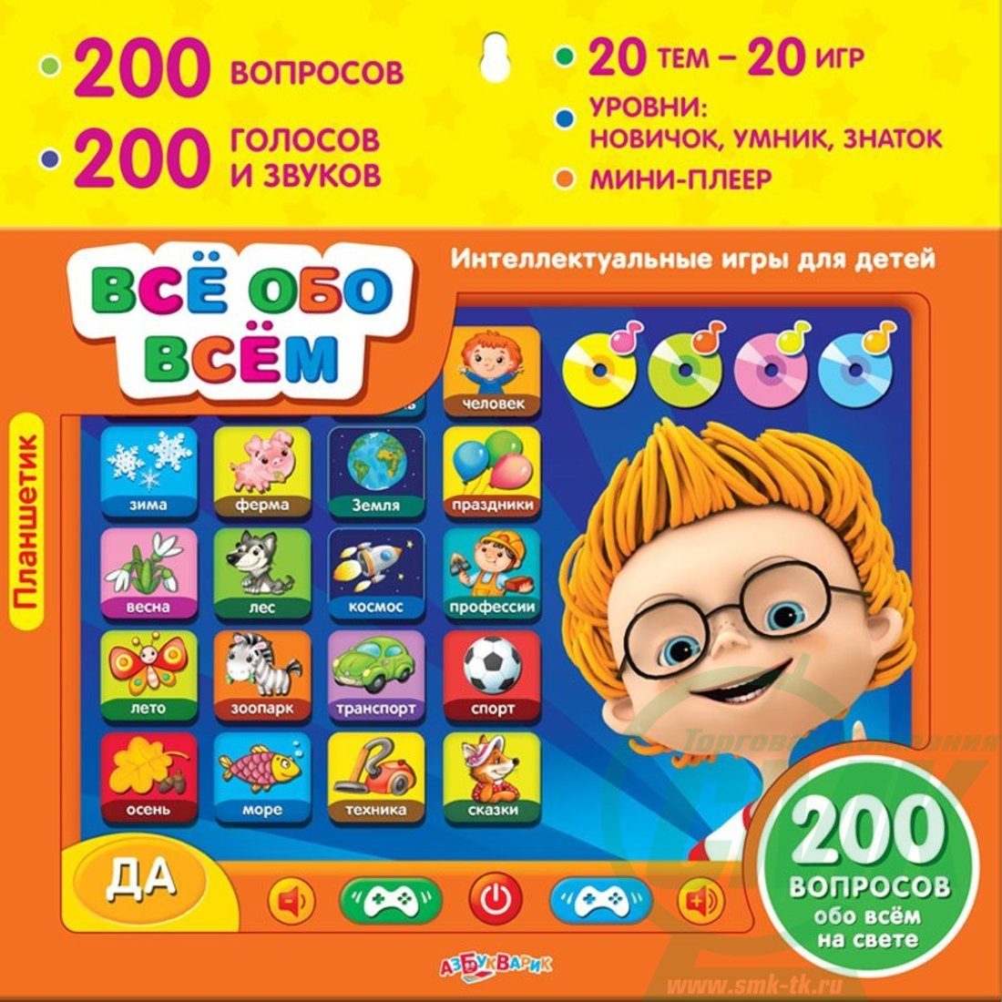 Ваш малыш любит умные игры-викторины? Тогда этот планшетик – для него! 200 вопросов, 20 разнообразных тем, 3 уровня сложности ждут маленького эрудита. А любознательный Макс поможет игроку стать Суперзнатоком! Бонус – мини-плеер с современными танцевальными мелодиями: «Арам зам зам», «Полька Евы», «Танец утят», «Собачий вальс».