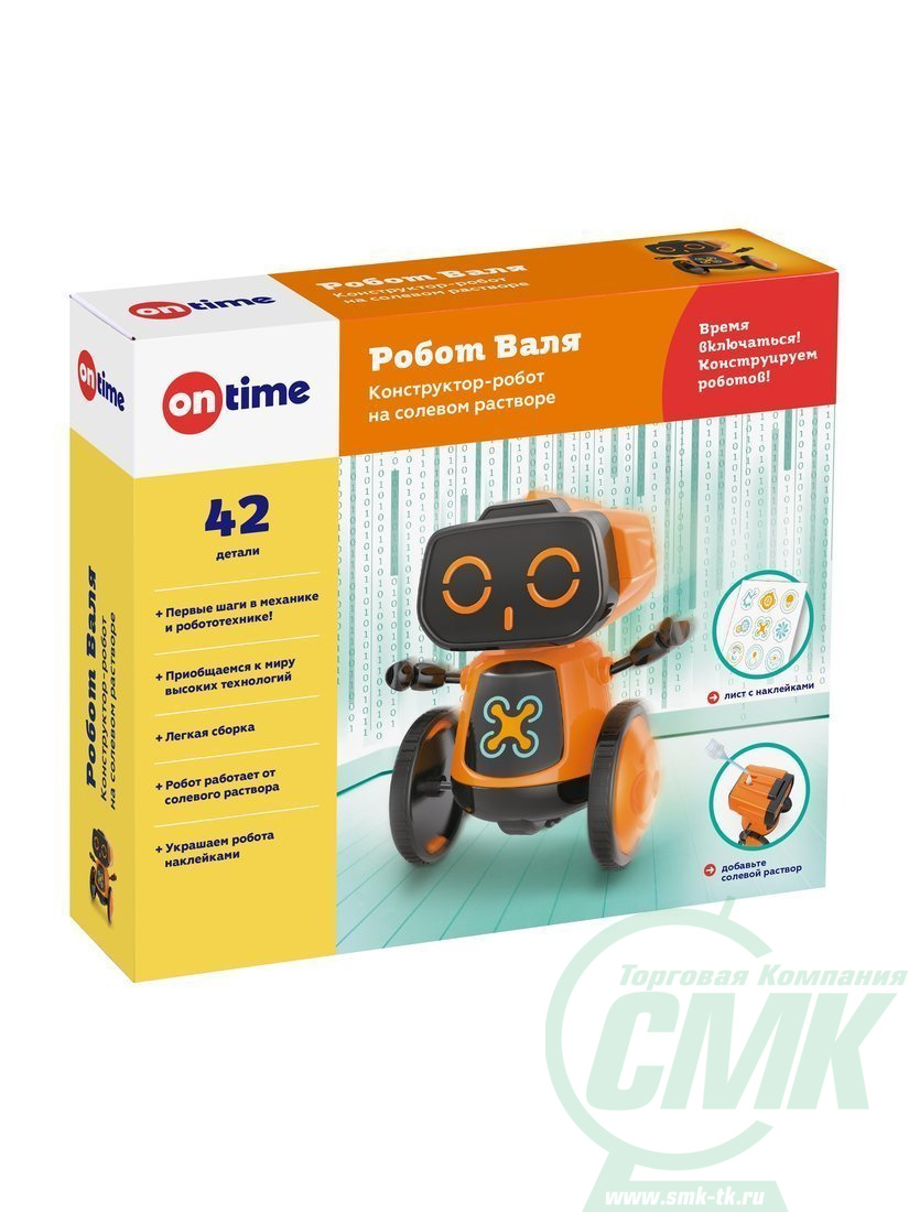 С игровым набором OnTime юный инженер сможет собрать уникального робота, который будет работать не от батареек, а от обычной соленой воды. Немного усилий, и в результате сборки вы увидите, как робот двигается за счет экологически чистого топлива. Как только энергия закончится, добавьте еще немного соленой воды – робот снова придет в движение!