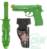 Игровой набор Военный, звук, в комплекте пистолет, кобура, кинжал, чехол, тестовые элементы питания AG13*3шт, пакет код 612515 арт. M0066