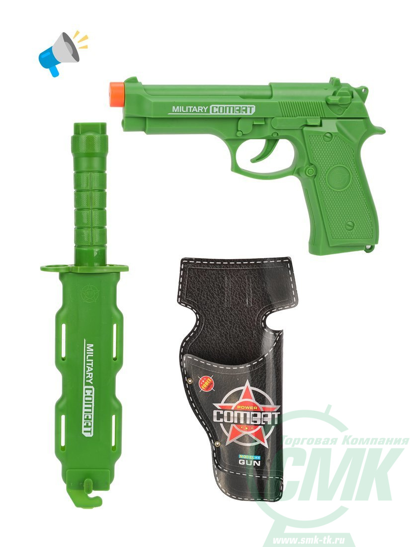 Игровой набор Военный, звук, в комплекте пистолет, кобура, кинжал, чехол, тестовые элементы питания AG13*3шт, пакет код 612515 арт. M0066