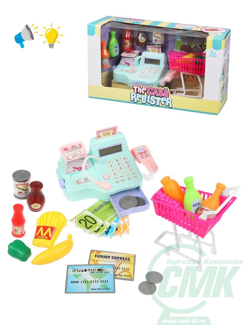 Касса в наборе с продуктами и аксессуарами (31 предмет), свет код601458 арт.PT-00829