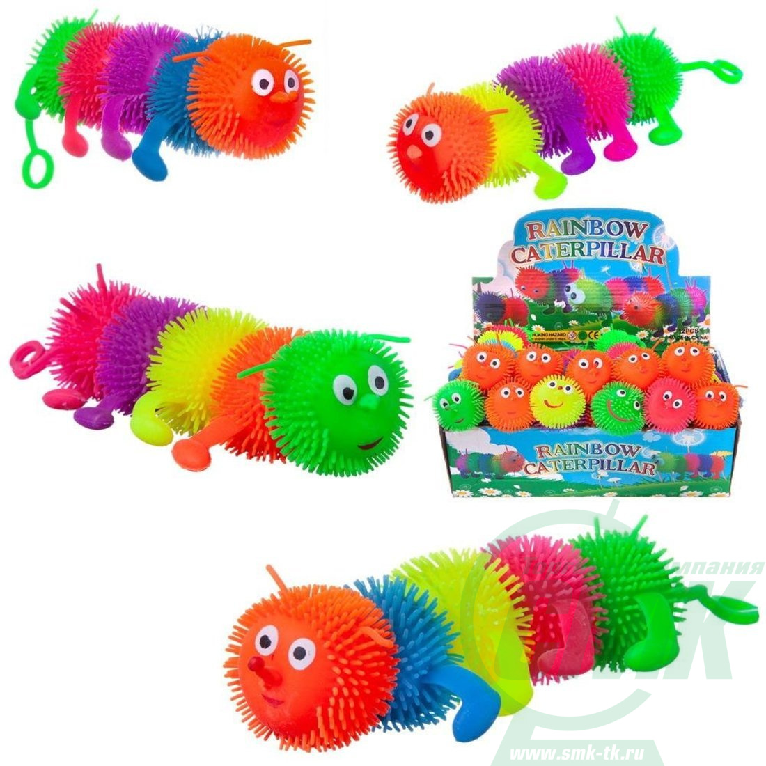 Игрушка-антистресс Гусеница (с ножками), со световыми эффектами код 601808 арт.ZE-044