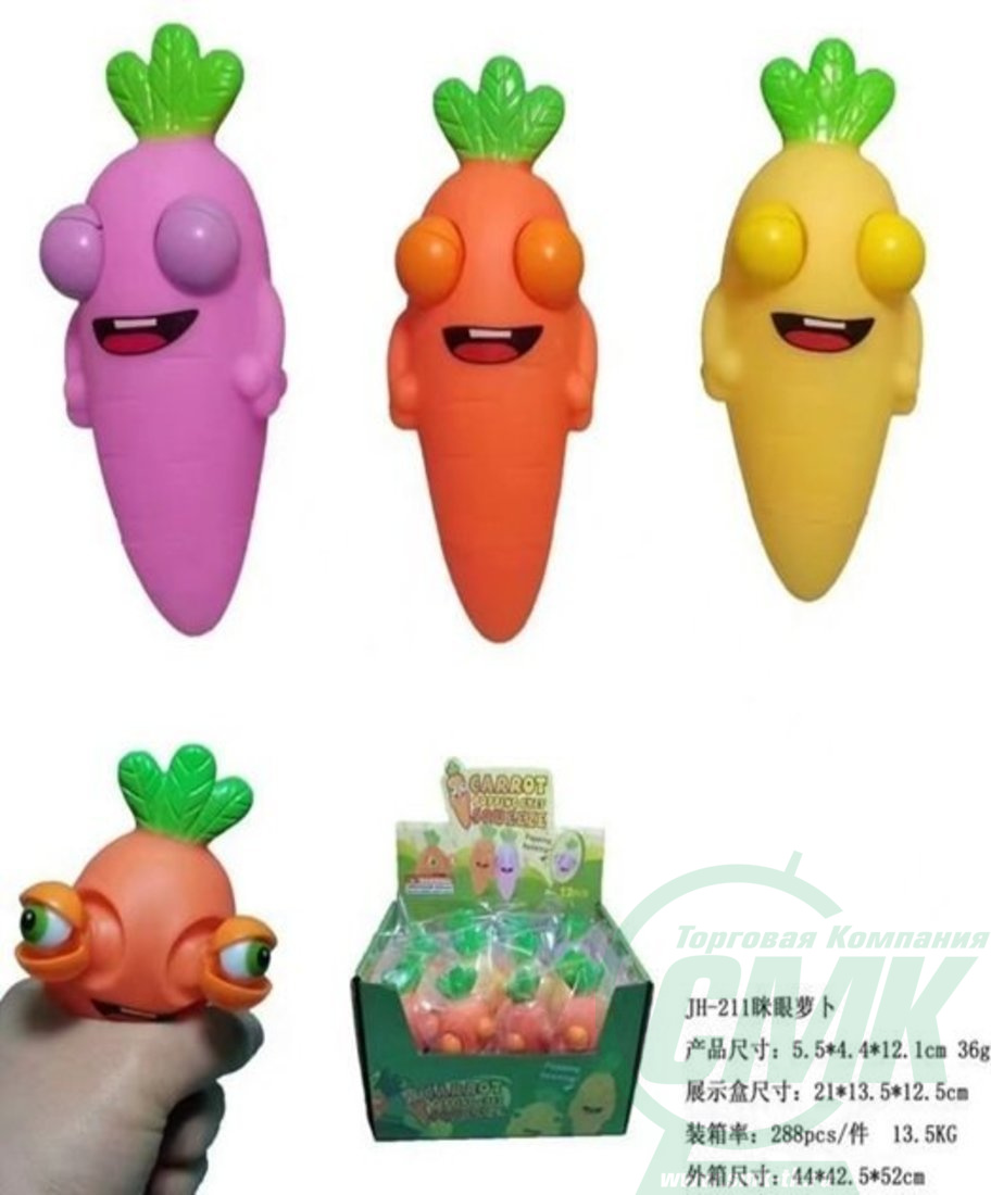 Игрушка-антистресс "Озорная морковь" в ассорт., дисплей 12 шт. арт.636395 код.636395
