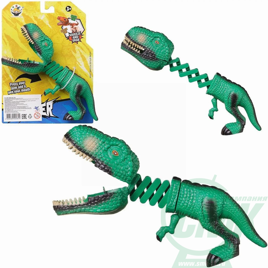 Игрушка Зубастики Динозавр, выдвижная 21 см код601758 арт.WE-16982/зеленый