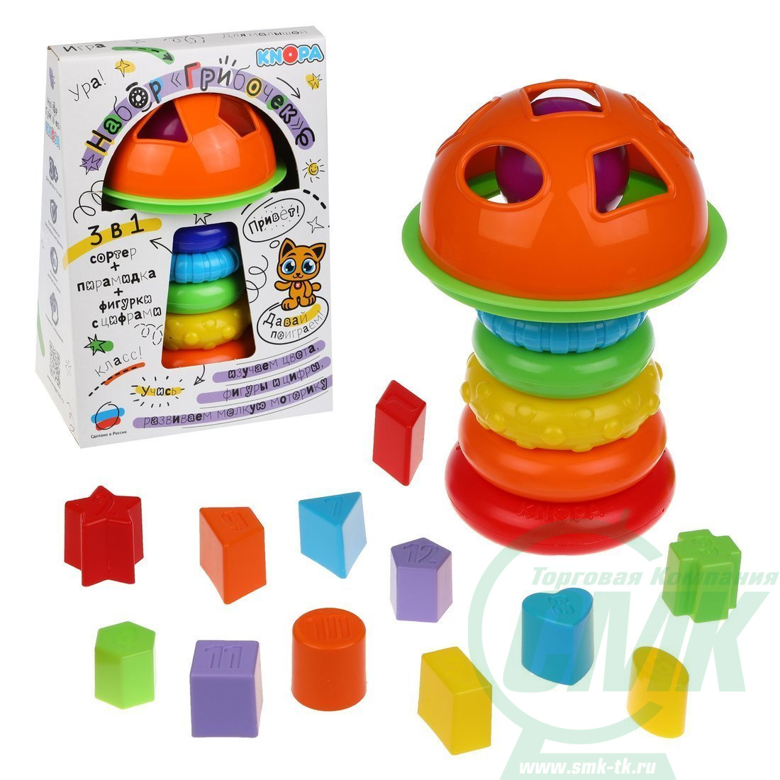 кольцами и полусфера–сортер из набора «ГРИБОЧЕК» откроют малышу не только новые