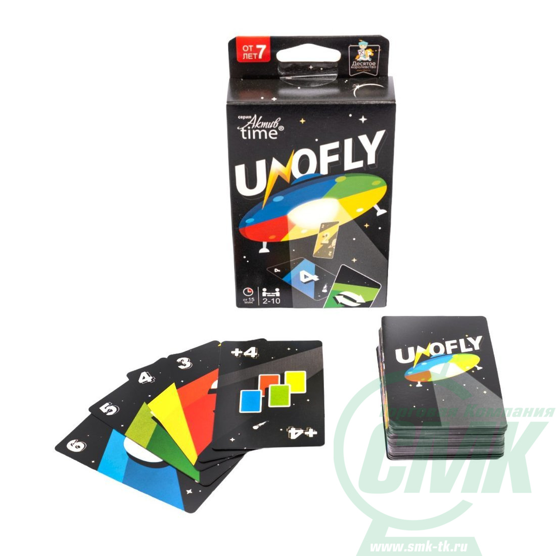 Настольная игра «UnoFly» серии «Актив time» - это интересная игра для большой компании. В ней может участвовать от 2 до 10 игроков.