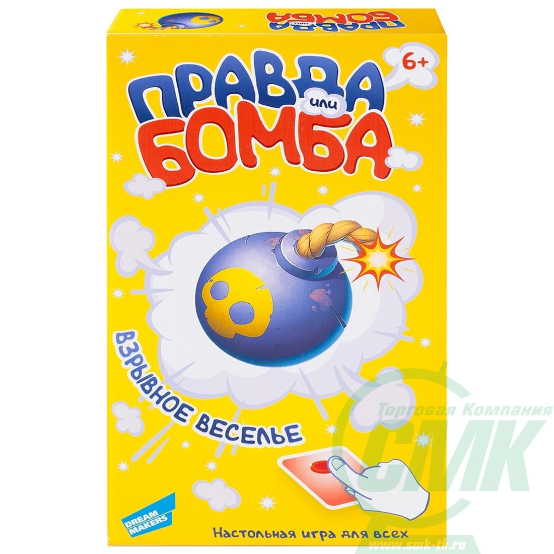 "Правда или Бомба" – взрывная настольная игра, которая понравится каждому! Цель игры: верно соотнести карточку правды и карточку с картинкой, и первым избавиться от всех своих карт. Кто из игроков быстрее остальных найдёт карточку с предметом, который может поместиться в кармане? А на какой картинке изображён предмет, который может быть сладким на вкус или мягким на ощупь? Выпала карточка "Бомба" — скорее сбрасывайте любую карту! Игра предлагает множество различных вариантов правил на выбор, в которых каждый найдёт себе что-то по вкусу. Игра для 2-6 игроков, в которую можно играть в любом месте и в любой компании. Игра развивает моторику, реакцию, ассоциативные навыки и дарит множество позитивных эмоций. Комплектация: Игровые карточки — 110 шт., правила игры: 1 шт.