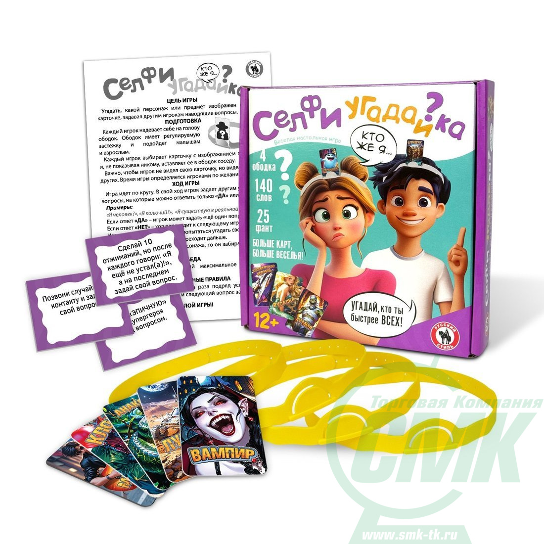 Игра "Селфи Угадайка" - веселая настольная игра, для идеального развлечения, семейных вечеров и встреч с друзьями. В комплекте 4 ободка из мягкого пластика, расширенный набор карточек: 140 забавных персонажей, дополнительные условия игры и карточки с фантами.