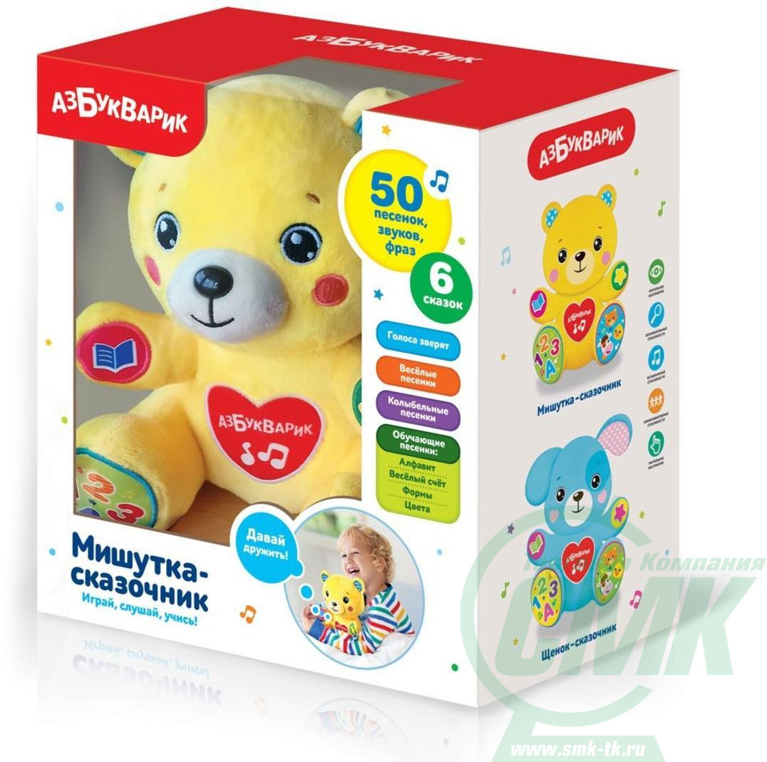 Мягкого мишутку так хочется обнять покрепче! Это не просто говорящая плюшевая игрушка – это настоящий друг для малыша. Он знает много сказок и песенок и с удовольствием поделится ими с ребенком! Нажимай на лапки мишутки – слушай 6 сказок («Курочка Ряба», «Три медведя», «Солнышко», «Пузырь, соломинка и лапоть», «Репка», «Гав-гав»), 4 обучающие песенки про алфавит, счет, формы и цвета, 6 веселых песенок о зверятах и не только! Все они сопровождаются множеством забавных звуков и фраз. А перед сном мишутка споет чудесные колыбельные песенки.
