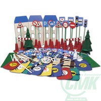 светофоры 50*20*20 - 4 шт. жезл 40*5 - 1 шт. светофоры пеше*одные 35*20*20 - 2 шт. штативы - 16 шт. накидки 39*50 - 9 шт. пешеходный переход 120*60 - 4 шт полосы разделительные 100*5 - 4 шт. полосы ограничительные 100*5 - 6 шт. дорожные знаки - 27 шт. рули Д20*4 - 6 шт. свисток - 1 шт.