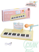 Игрушка музыкальная: Синтезатор, 37 клавиш, микрофон, USB кабель, встр. акк-р 3,7 V, в ассорт., коробка код 655659 арт. CY-7094B