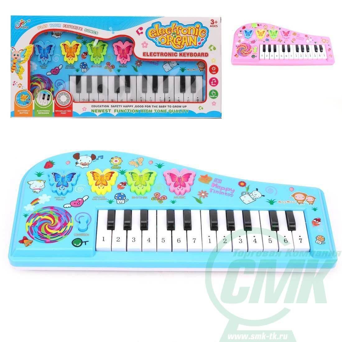 ДЕФЕКТ УПАКОВКИ Орган детский Бабочки, в ассорт., батар.АА*3 шт. не вх.в компл., кор. код 656806 арт.8813A