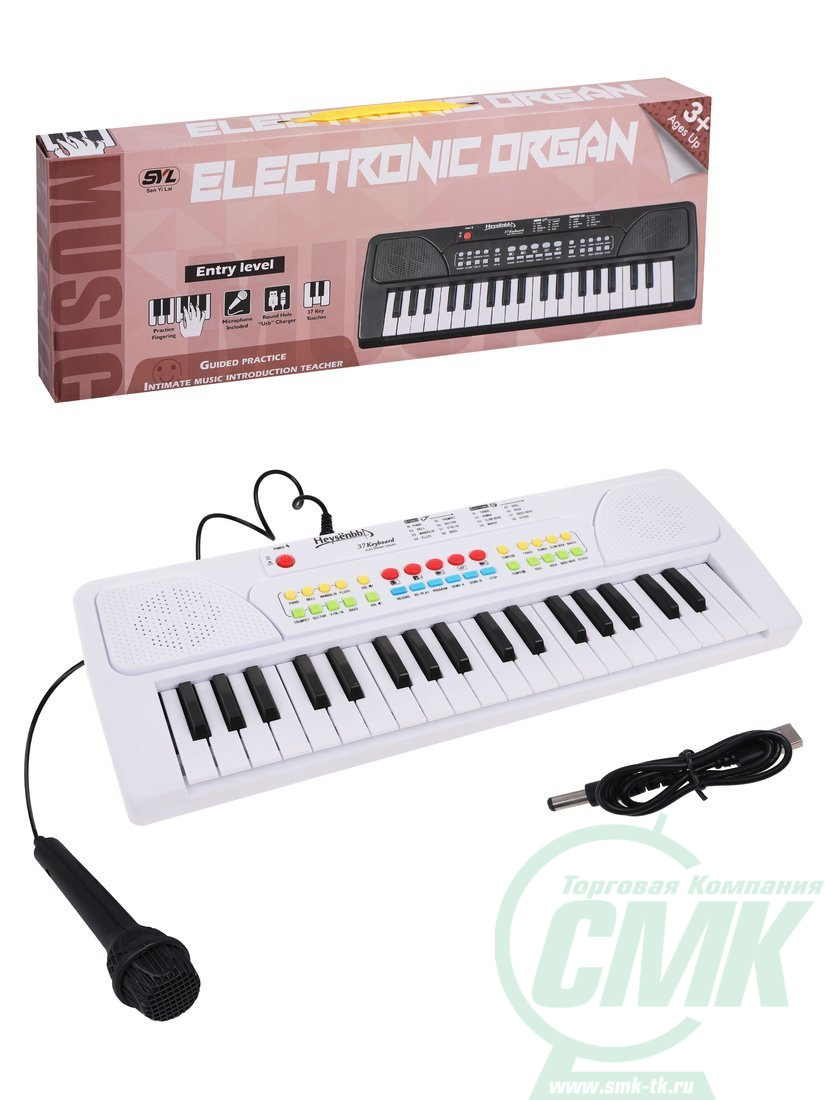 Музыкальный инструмент: Синтезатор, 37 клавиш, микрофон, USB кабель, эл. пит. ААх3 не вх. в комплект, коробка код 652110 арт. SYL-8202B