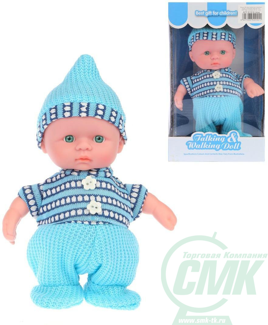 Кукла 20 см в синем костюмчике, ходит, повторяет фразы, бат.AAA*3шт. в компл.не вх., кор. код 642092 арт. SY818 blue