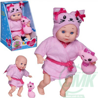Пупс Baby Ardana 23 см, в банном халате и игрушкой кошечка код 601766 арт.A361C