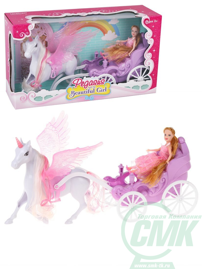 со сказочной лошадкой и куколкой! Белоснежный единорог с цветной гривой и